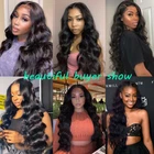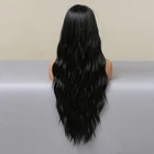 Glue Less Lace Front Wig Heat Resistant Synthetic Hair Natural Long Wavy Black