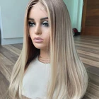 Heat safe Synthetic Hair Frontal Lace Wigs Long Straight Highlight Blonde Soft