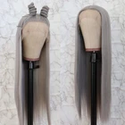 Long Straight Synthetic Lace Front Wigs Heat Resistant Gray Wig Natural Hair US
