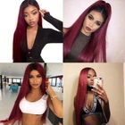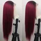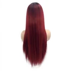 Ombre Burgundy Lace Front Wigs Heat Resistant Synthetic Long Straight Hair Soft