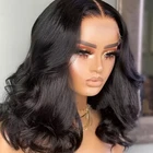 Short Black Body Wavy Synthetic Lace Front Wigs 10% Human Free Part Glueless Wig